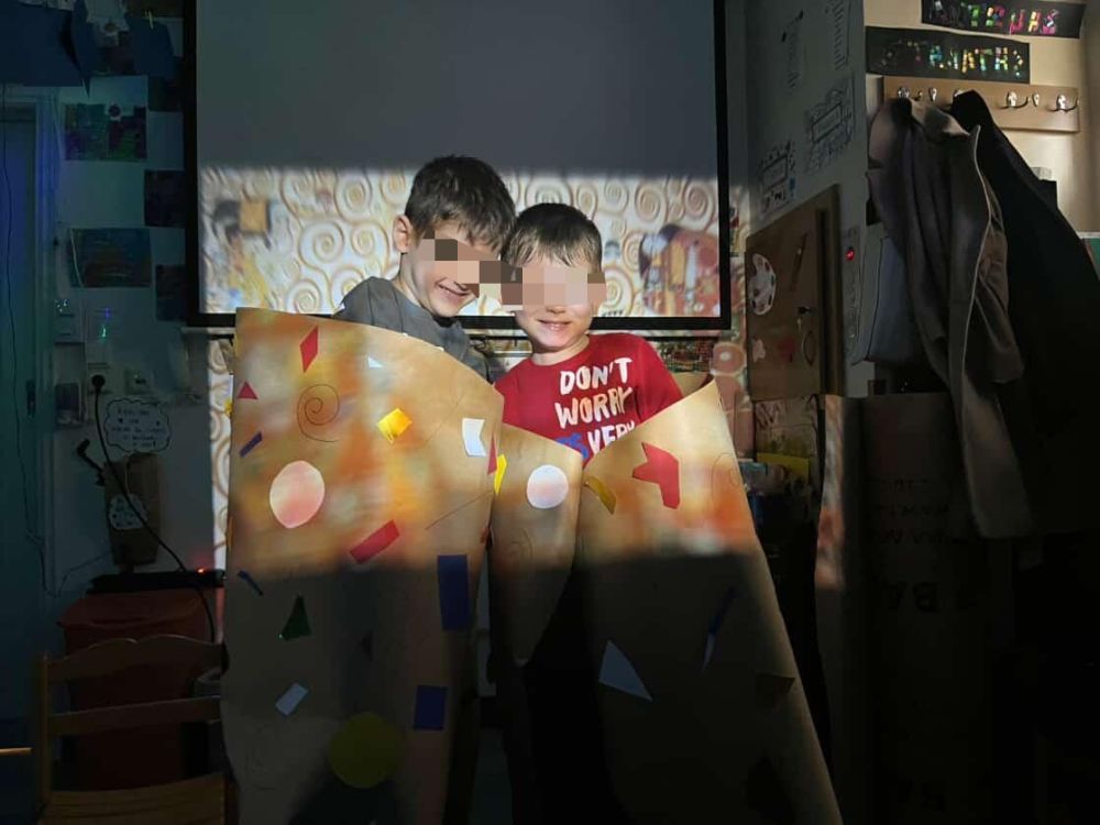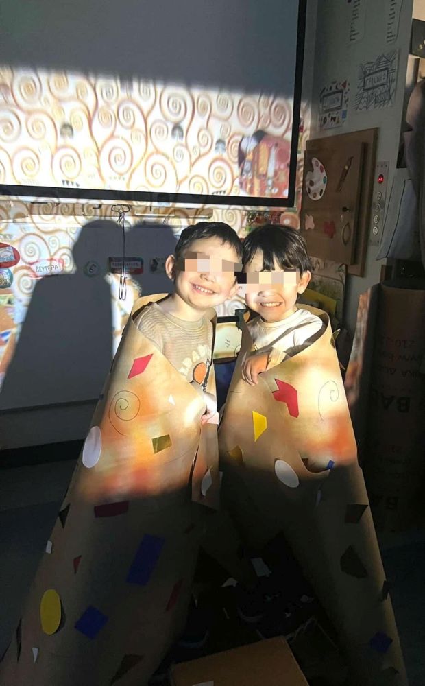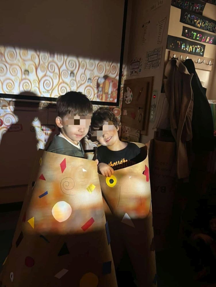 Τα προνήπια παρατήρησαν τα έντονα χρώματα, τα σχήματα και τα μοτίβα του έργου