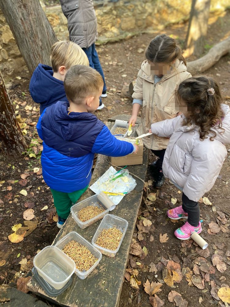 και ετοίμασαν ταΐστρες για τους φτερωτούς κατοίκους του δάσους.